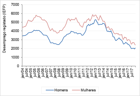 DESEMPREGADOS INSCRITOS NO INSTITUTO DE EMPREGO E FORMAÇÃO PROFISSIONAL