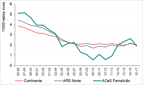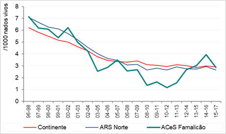 MORTALIDADE INFANTIL (/1000 NADOS VIVOS), 1996-2017 (MÉDIA ANUAL POR
