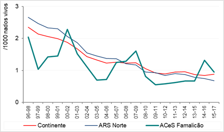 MORTALIDADE PÓS-NEONATAL (/1000 NADOS VIVOS), 1996-2017 (MÉDIA ANUAL POR