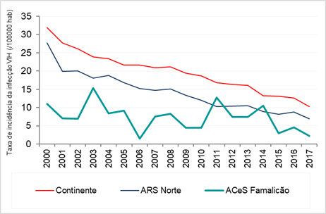 INCIDÊNCIA (/100000 HABITANTES) DA INFEÇÃO VIH (CRS+PA+SIDA), 2000-2017 |