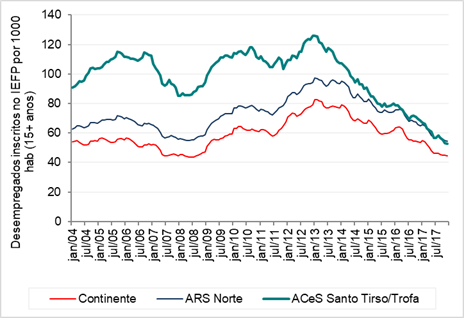 inscritos no IEFP / 1000 habitantes (15+ anos) |
