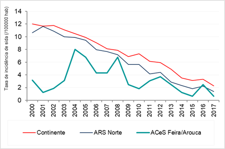 DA TAXA DE INCIDÊNCIA MÉDIA ANUAL DE SIDA (/100000 HABITANTES) NA ARS NORTE