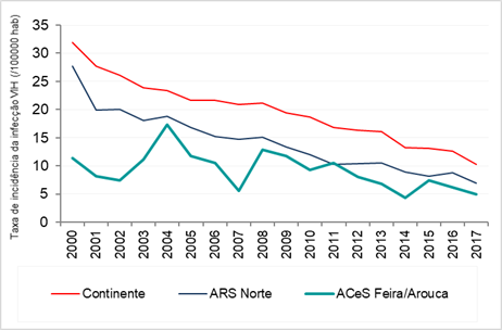 INCIDÊNCIA (/100000 HABITANTES) DA INFEÇÃO VIH (CRS+PA+SIDA), 2000-2017 |