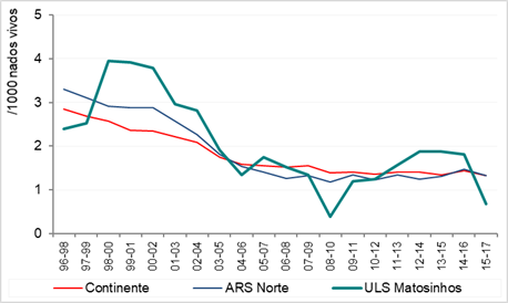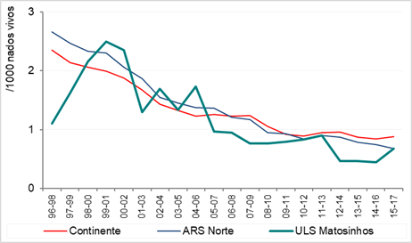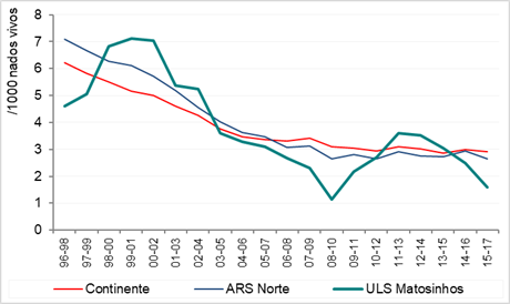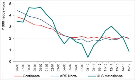 MORTALIDADE INFANTIL (/1000 NADOS VIVOS), 1996-2017 (MÉDIA ANUAL POR