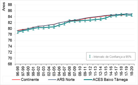 DE VIDA À NASCENÇA PARA O SEXO MASCULINO, TRIÉNIOS 1996-1998 A 2018-2020 |