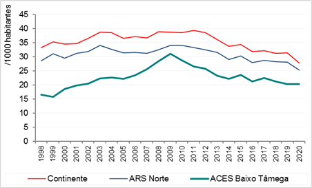 Fonte: Observatórios Regionais de Saúde (dados: INE, IP) |