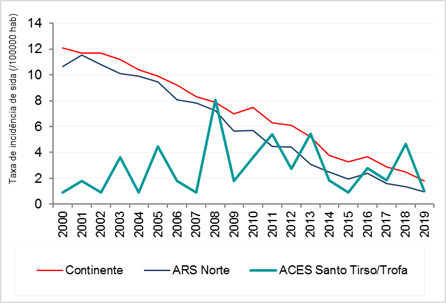 DA TAXA DE INCIDÊNCIA MÉDIA ANUAL DE SIDA (/100000 HABITANTES) NA ARS NORTE